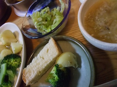 具は少なくて、パンとじゃがいもとブロッコリー、