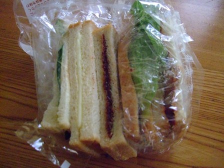届いたばかりの角食パンで、サンドイッチ