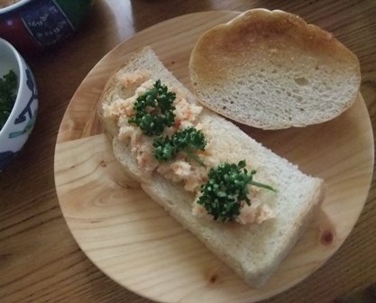 ロールパンにはサンマの水煮の汁を浸して食べました。