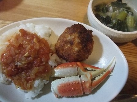 カニの爪とトマトソースかけごはん