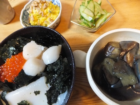 夏休みのごはん、ふたつめは、北海道海鮮丼の具。
