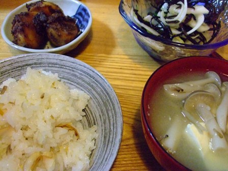 汁だけを玉ねぎや戻したひじきにかけてサラダにしました。