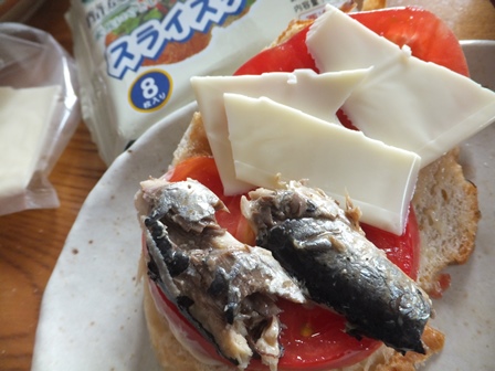 オイルサーディン、トマト、チーズで