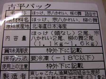 古平パックは、北海道のふるびらのお魚のパックです。