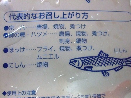 ホッケ、カレイ、柳の舞などが入っています。 魚の大きさによって、6尾から8尾くらい、入っているでしょうか。 料理の方法がわからなくても、袋の裏にも載っているので お魚好きなら大丈夫。 ふつうに、塩焼き、煮物、揚げ物などにできます。 ホッケは、家で開きにして、冷蔵庫で干す人もいます。 今回届いたのは、これだけ。 柳の舞はさっぱり煮にしました。 カレイはから揚げ。 ホッケは塩焼きにしました。 開かなくても小ぶりなので、丸ごと焼けます。 こちら にも、レシピがあります。 |