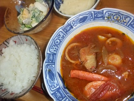 土鍋で作ると、火を止めても、保温効果で味がゆっくりしみこみます。 いつもばらばらに入れる具を、並べてみました。 高橋徳治さんのおでん種セットがないので、 ねりものをいろいろ注文して楽しんでいます。 今回は、 さつま揚げ丸型、お好みさつま揚げ、おとうふ揚げ (高橋徳治商店) イカ入紅しょうが揚げ、ぐち入りはんぺん (伏見蒲鉾) 大根、こんにゃく、がんもどき、ちくわぶ、卵、刻み昆布 ねりものから、だしが出るので、うちはだしをとらずに昆布のみで塩味。 今回は刻み昆布にしてみました。 じゃがいもや里芋も入れたいのですが、どうしても入りません。 こんなにたくさんあっても、残りをお昼に食べて、もうなにもありません。 寒くなってから、もう何度も作っています。 さつま揚げ角型やちくわがはいったもの。 がんもどきのかわりに厚揚げや、 じゃがいもが入ったねりもの、おじゃが丸がはいったもの。 一口サイズのごぼう入りのやボール揚げは数があるので、 いくつも食べらるのでうれしいです。 最近はやりのスープ用の保温ポットに入れると、翌日のお弁当にも便利です。 (うちでは高校生が学校についたときに食べる朝ごはんですが・・・) ・・・ おいしいおいしいおでんですが、 市販のねりものは買わないし、 コンビニのおでんも食べたことがありません。 ねりものは、魚を加工して作るので、手間もかかるし、 ほんとうなら魚より高くなるはずです。 安くするために、魚を減らして、別のものを混ぜ込んだり (水や油で増量する方法もあるのです) うまみが少ないので、アミノ酸や甘味料で味をつけたり、 ぷりぷり感を出すためなど、いろいろな添加物が使われているからです。 生活クラブでは、生産者から直接お話を聞いて、 市販品との違いを明らかにしています。 高橋徳治商店 交流会 |