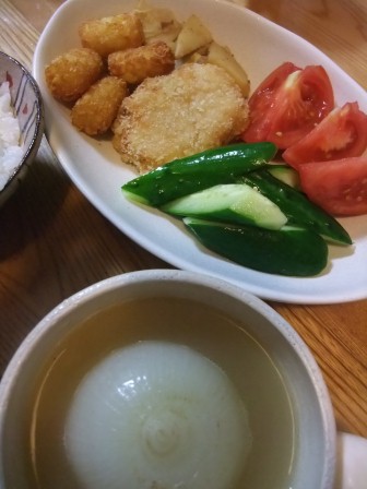 翌日、炒めた玉ねぎと牛乳と刻んだトマトを入れて温めました。