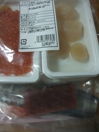めばちまぐろ、いくら醤油漬け、近海甘えび、するめいか、帆立貝柱、さんま酢締めがセットになっています。