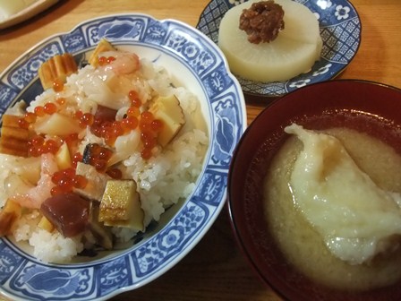 年末に買っておいた手巻き寿司セットで、ばらちらし寿司を作りました。