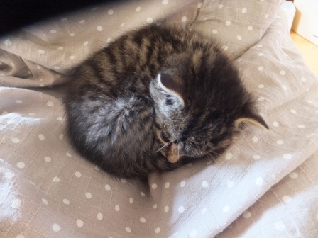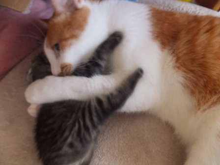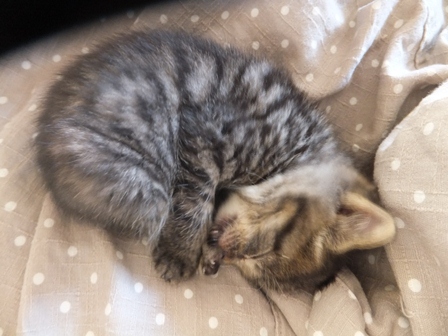 どんどん大きくなります。とってもかわいいので、猫の世話ができる人だったら、いますぐにもらってほしいです。までろんがかなしむけど・・・ |