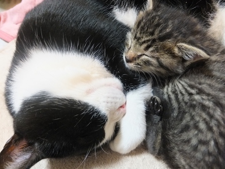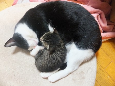 大きくなりましたね。かわいい。2ニャンとも仲良し(#^.^#)