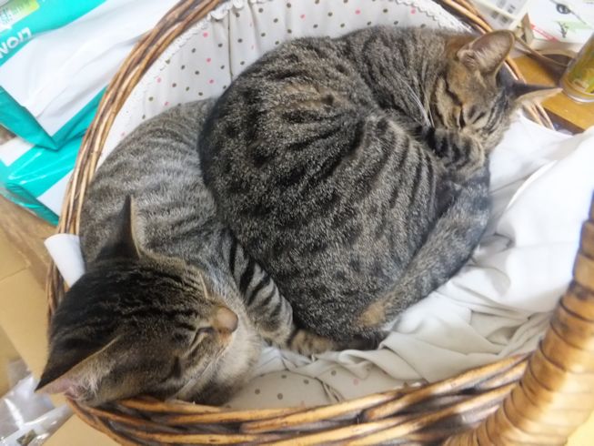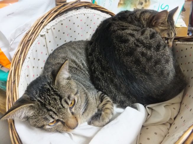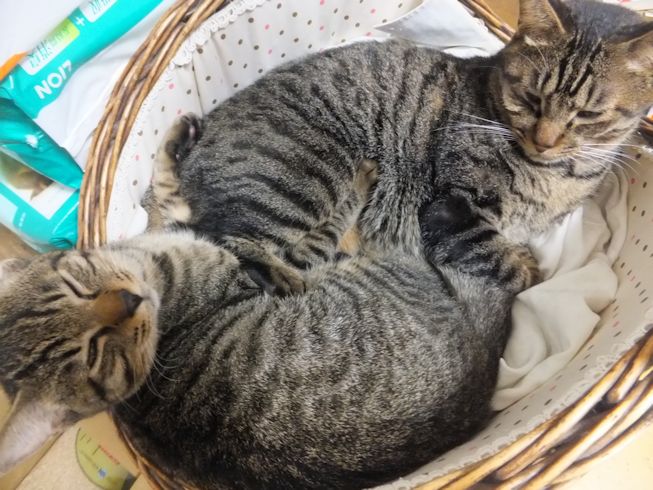 キジトラとはいえ、ここまで模様が似てるなんて♪ パッと見だとどっちがどっちだか分かりませんね~