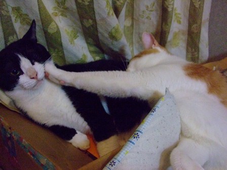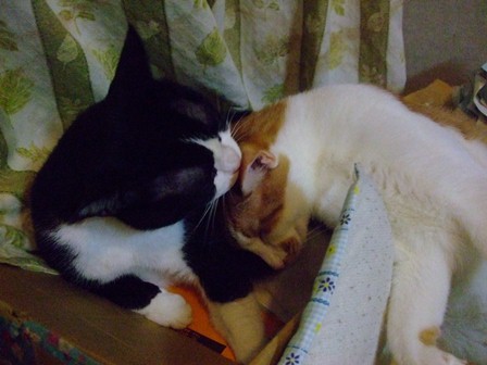 いっつもやっつけられているのに、 なぜかぱたぽんは、までろんがかわいいみたいです。 しめしめになるまでなめて、いやがられてしまいます。 |
