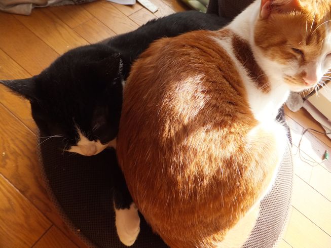 ぱたぽんがねているところに、寄りかかる、までろん。