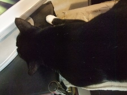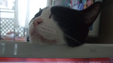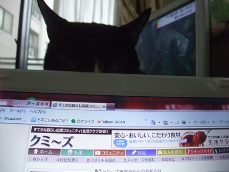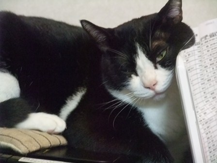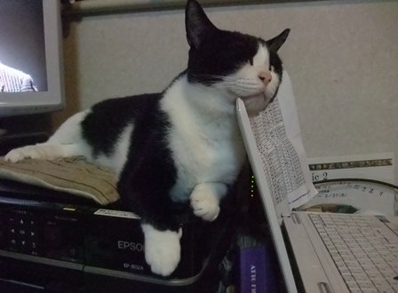 パソコンを使っていると、目の前で寝ています。