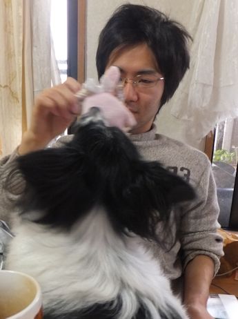 おもちゃがほしくて、ひざ(というか、足の上) に乗ったはな。