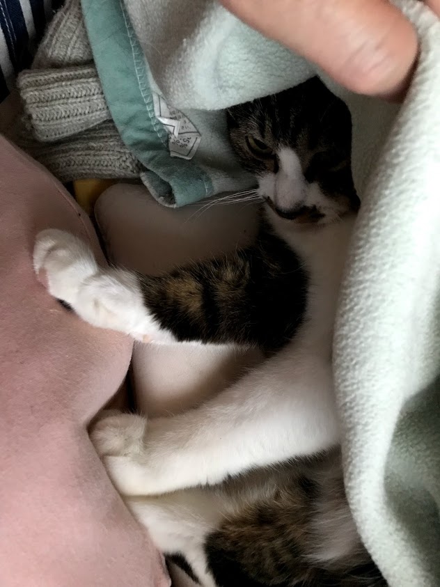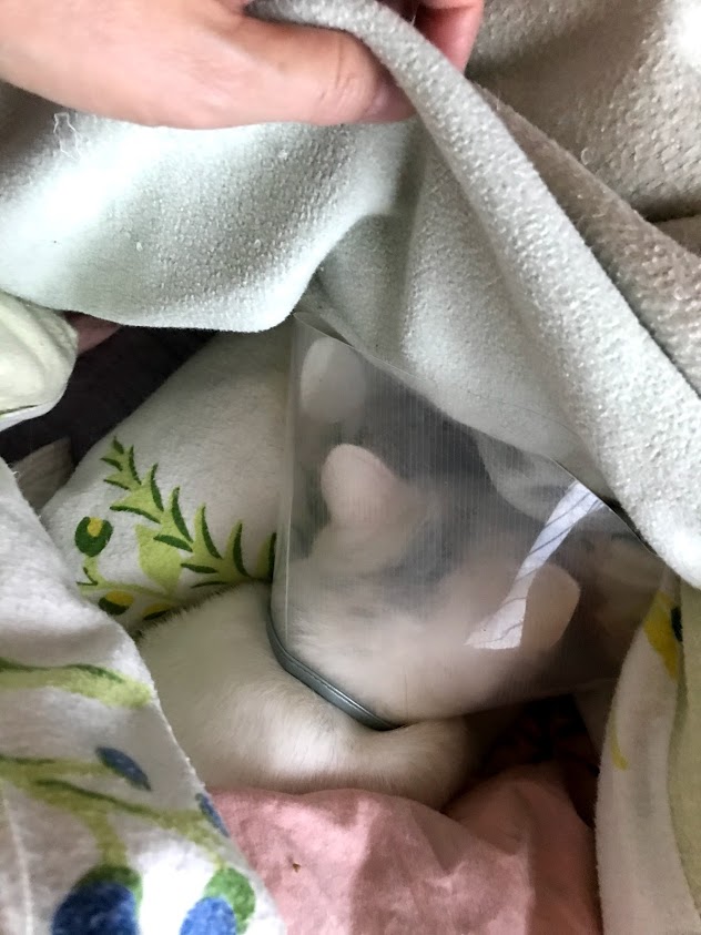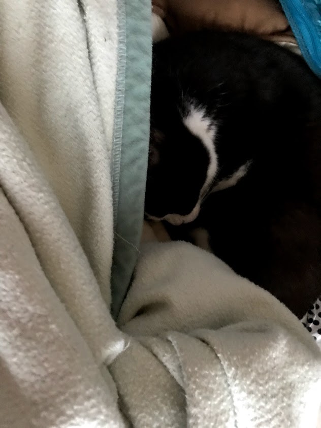 寒いのかなーと毛布を掛けてみました。