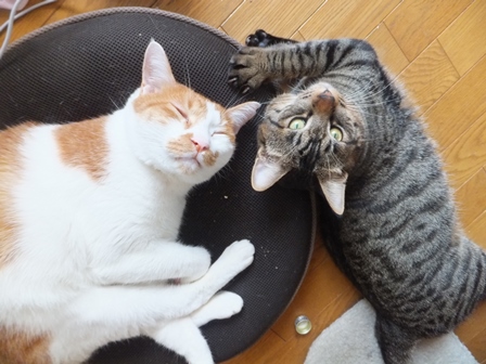 猫2匹、ぱたぽん と までろん。
