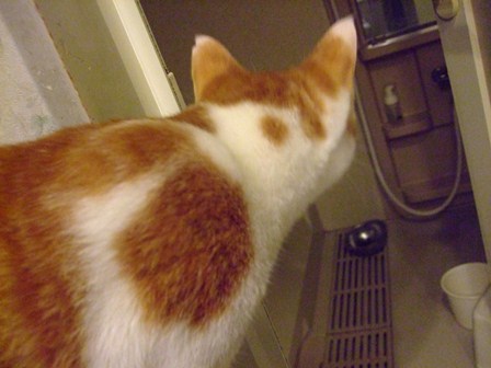 カメラを取りに行ったら、かなりおもしろかったです。 水が突然出たり、止まったりするたびに、 二匹で目を真ん丸にしてみてるのが、後ろから見てもわかり、 わたしも後ろで笑っていました~ 耳と首の角度が物語っているでしょう~ |