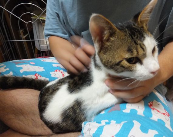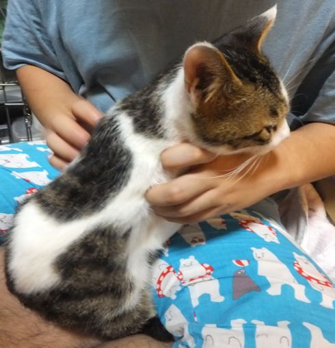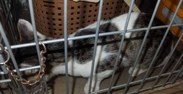 先週、子どもが仕事に行くときに、自転車置き場で拾った猫。