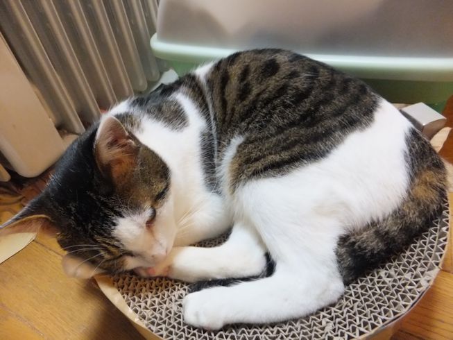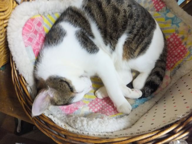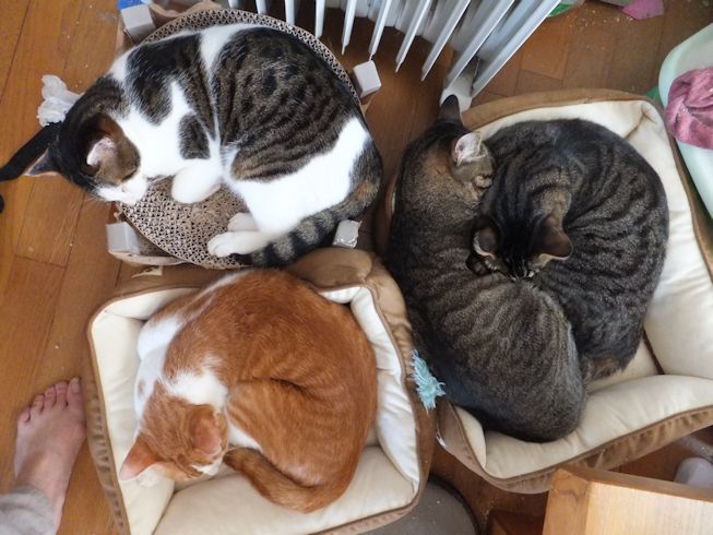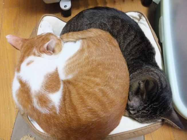 3月初め、まだ寒くてオイルヒーター稼働中。 そんなところに、新しくペット用ベッドを置きました。こちらも大人気。 はなだって座りたいんです~ ねっころがっちゃう。 はみだしたひとたちもそれぞれどこかに収まってます。 イブキの一番お気に入りはこのかご。 イケメンのかんた。 色違い親子のみたいなイブキとまでろん。 ぱたぽんは、歯肉炎がひどくなり、前歯以外は全部抜歯しました。そうしたらすごい甘えんぼになりました。 なんかもんくある~? ないです。牙がなくなってすっきりした顔になりました。