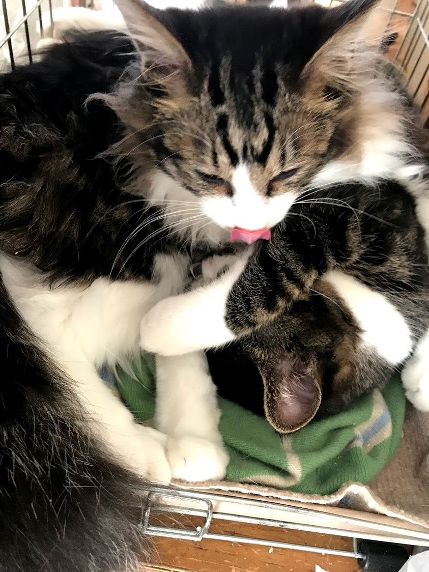 みんなで仲良く寝ました。 隣ではガブが丸くなってました。 ちょっとトンネルもいいかも。とシャア。アムロはかごがお気に入り。 ガブは隣のアムロ用ケージの上がお気に入り。一番、ひとのことを見に来るガブ。食べものもだけど、何にでも興味があります。シャアがアムロ用ケージで寝ているところに割り込んで、嫌がらせになめてあげるガブ。 ついでになめてあげるよ~カブガブ ひとに見られるだけで、ゴロゴロとごきげんアムちゃん。