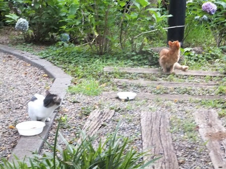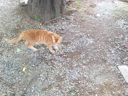 6月、おとなになっていないくらいの子猫たちが、出没しました。