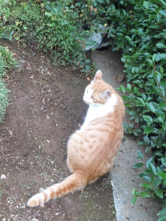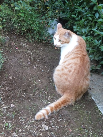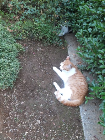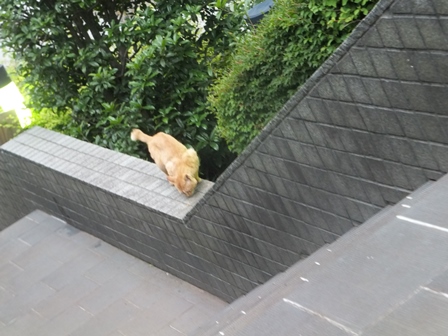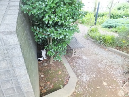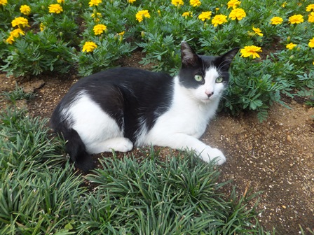 別の日のがっちゃんは、花壇の中。