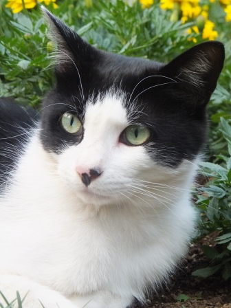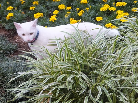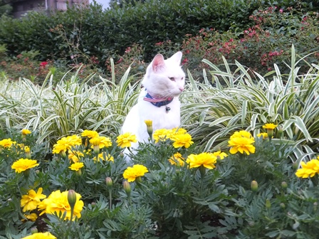 ももちゃんは、白くて、お花の中でも映えます。