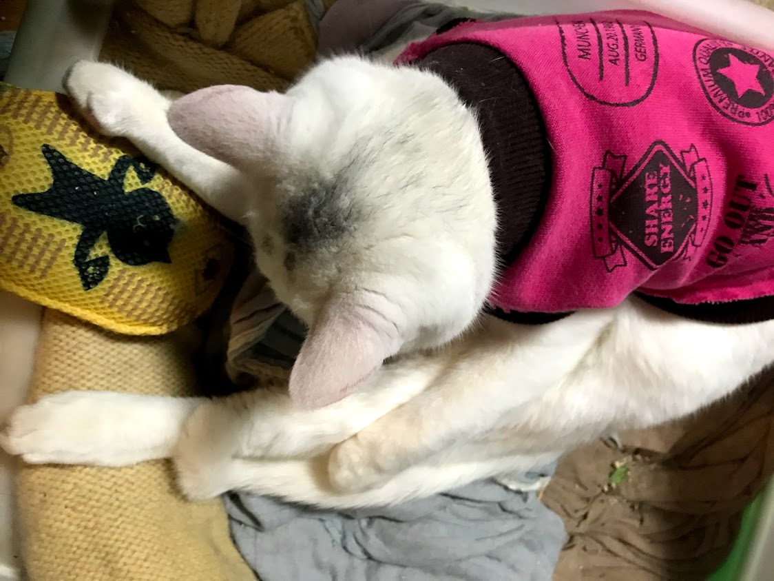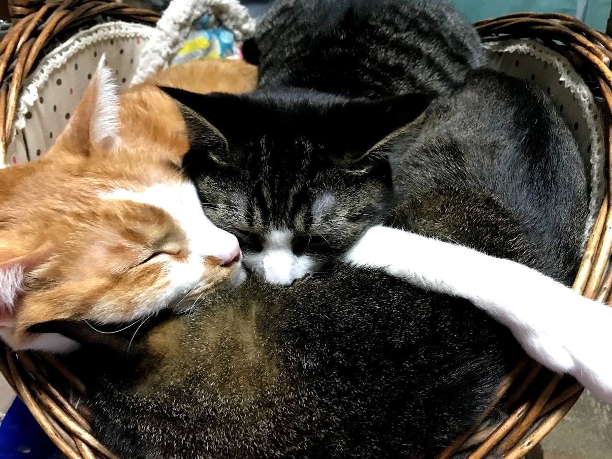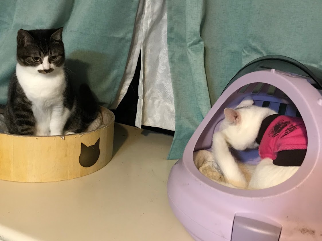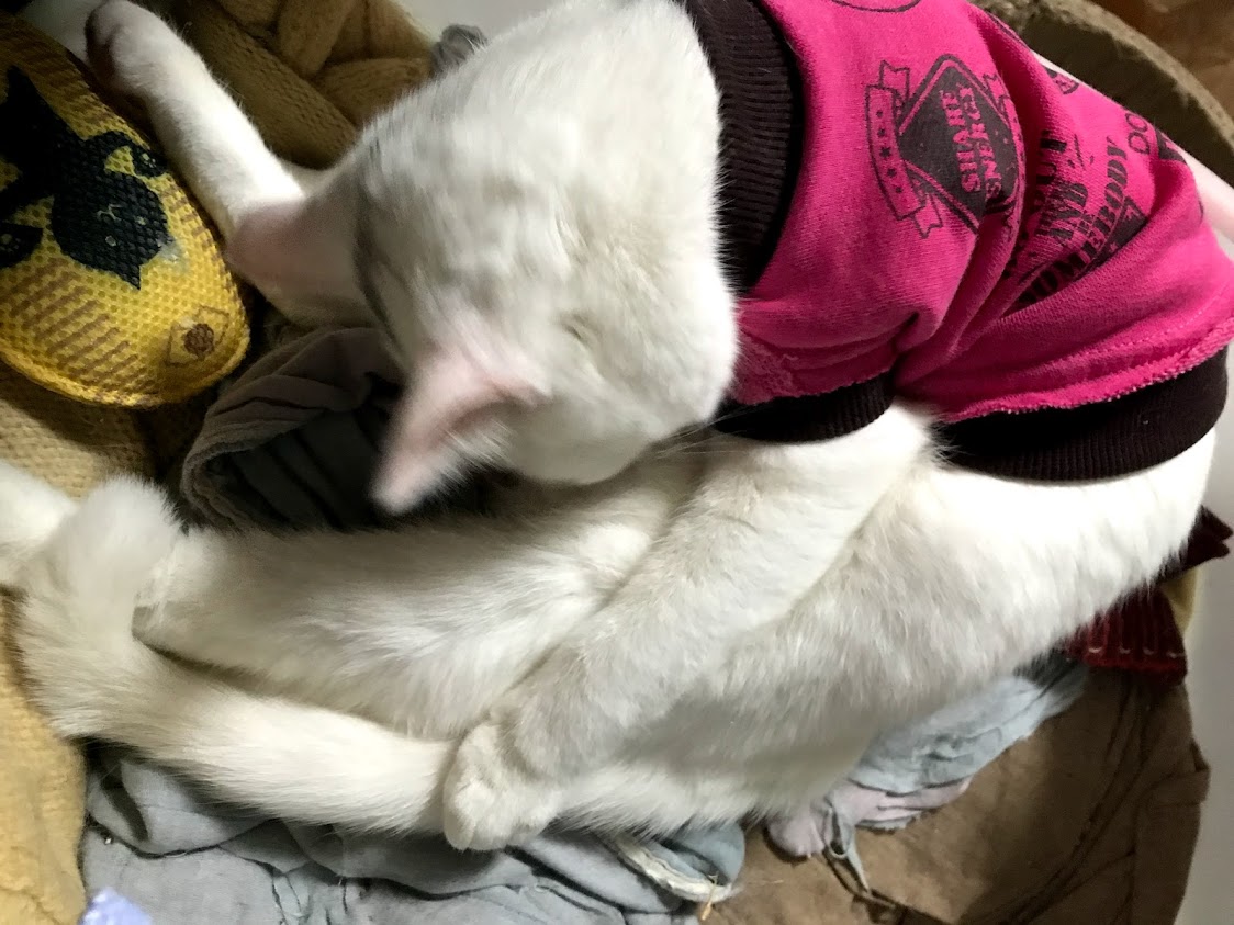 までろんがシャアを怒っている時もありますが、いっしょに寝ていることも。