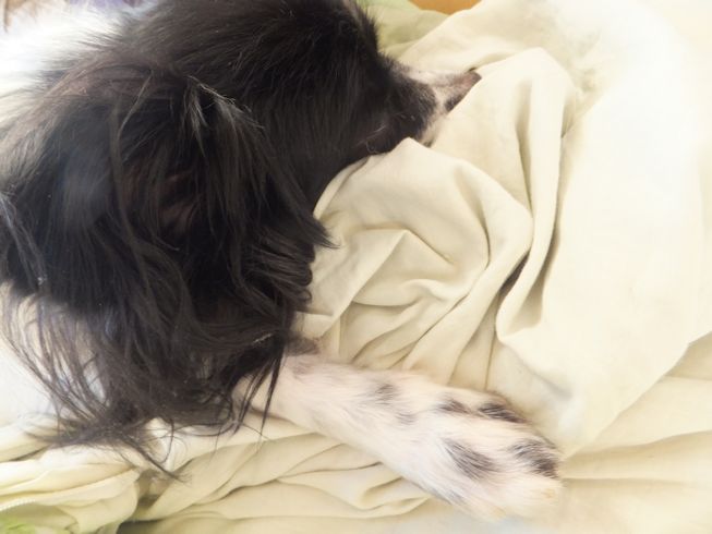 猫も犬も洗濯物の上が好き。うちにはないクッションやソファーのかわりになっています。前足の間は鼻をうめるのにちょうどいい。 なんですか? 眠いです~ 先月、はなは、急に腰が痛くなったようで、家でほとんど歩かず、マンションの外階段も降りられませんでした。病院で検査に4万もかかりましたが、異常はみつからず、結局、痛み止めを数日飲んでよくなりました。ぎっくり腰かなあ・・・