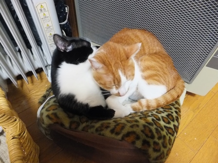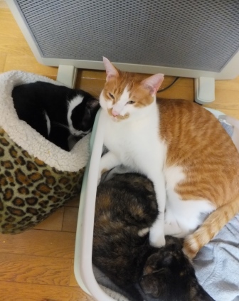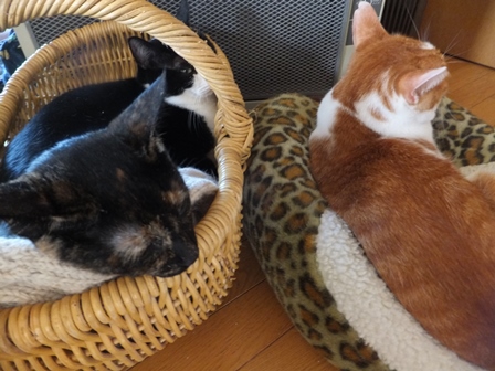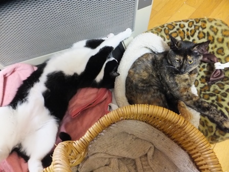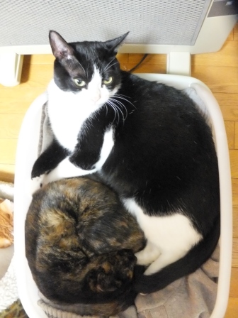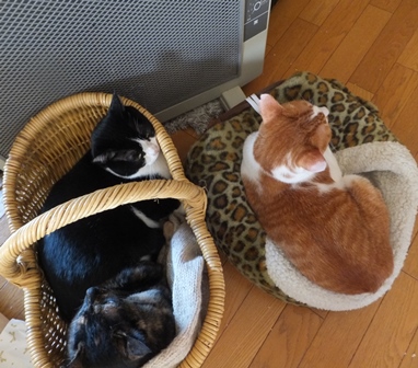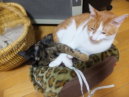 かごは温まらずに寒いのか、いつも場所の取り合いになるので、
