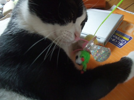 までろんは昨日から、ネズミの人形がお気に入り。