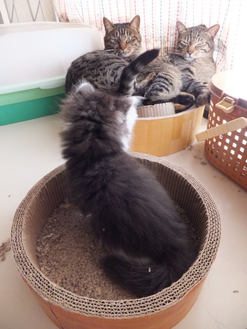 合わないときには帰ってくるからと言われましたが、イブキはよほど猫が嫌いじゃなければどんなお家でも帰ってこないよねーと言っていたら、3日目で正式譲渡の連絡がありました。 ガブはこの2,3日でだいぶおりこうな猫になってきました~♪ まだうちの猫を見分けられないので、見境なくとびかかっていますが、そのうち覚えるでしょう。 成長が目に見えるのは楽しいです。 |