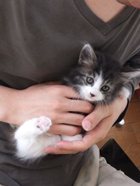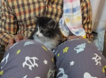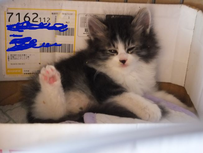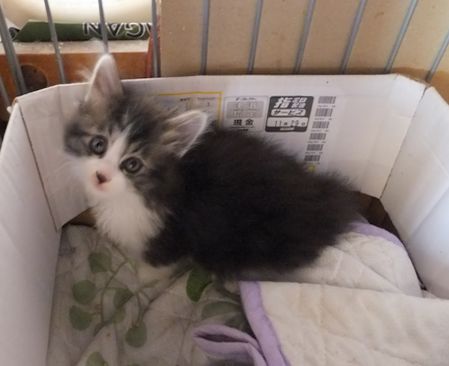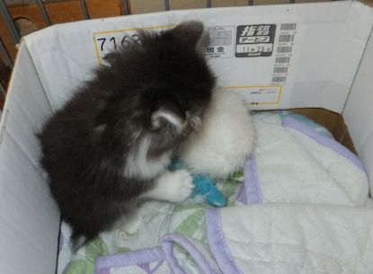夜中用に置いた水はこぼして、床も子猫もびしょびしょ。