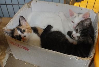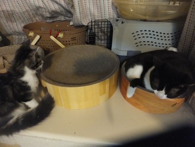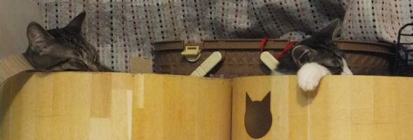 3きょうだい、よく2ひきで頭をくっつけてねています。