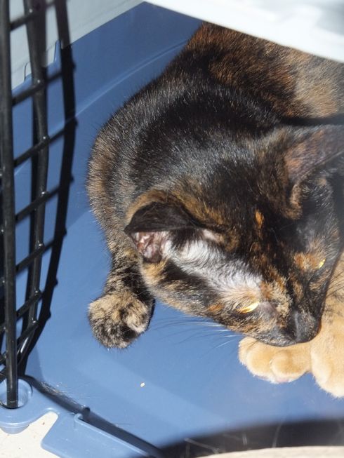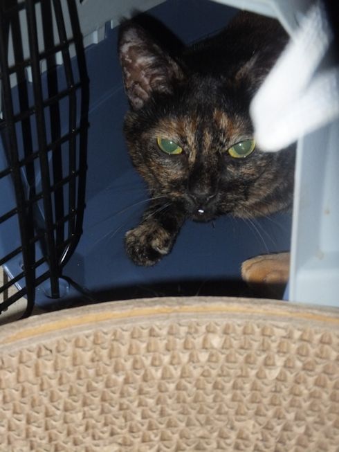 出窓に置いてあったキラクちゃんのキャリーバッグに入った苑子。