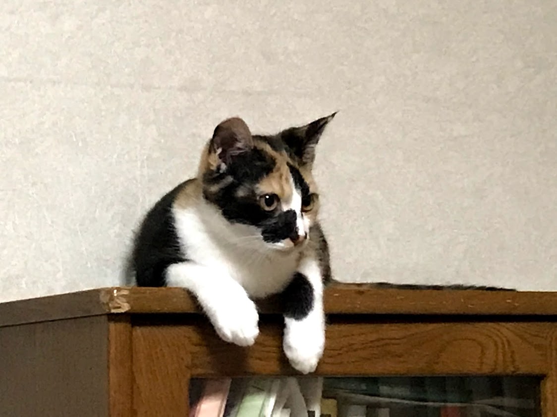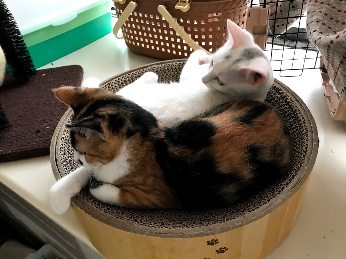 セイラさんは、9月にトライアル、11月に正式譲渡になり、4匹ではなく3匹の子猫になったのでした。8月、まだ子猫らしいです。この時はまだ夜はケージの中でした。 夜食までは遊び放題。夜もケージに入れなくなると、夜中と夜明けと人が寝ている間に2回は運動会をしていました。
