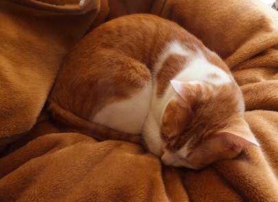 猫たちは夕方寒くなるまで、ひなたで熟睡の午後。