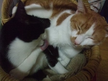 まだ顔を合わせると、ハーッとおこりますがたぶんそろそろなめたくなってくるでしょう~てとらんのほうは、お母さんみたいと思っているようです。