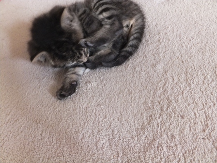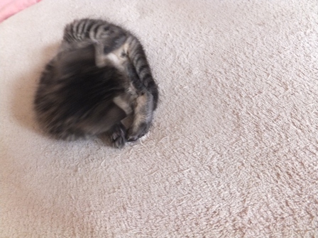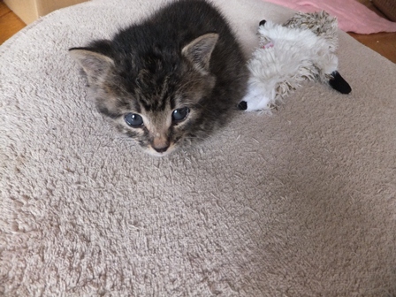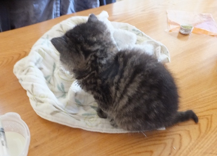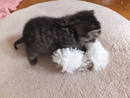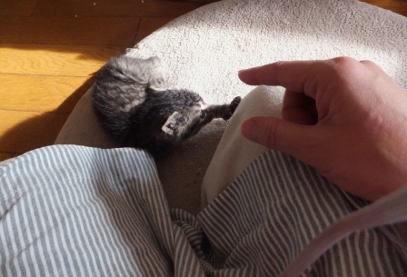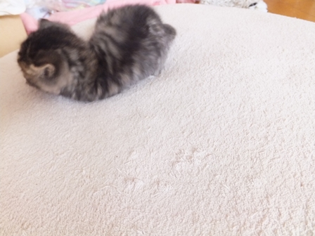 トイレも、最初は座って出てくるだけだったのが、掘るまねを始めたり、ミルクを飲んだら、そのまんまなので、濡れたティシュで拭いてやると気持ちよさそうに首をのばしてるだけだったのが、きれいにしなくちゃと胸のあたりをなめてみたり、誰も教えないのに、小さな頭のどこから猫のすることリストが出てくるのかとっても不思議です。