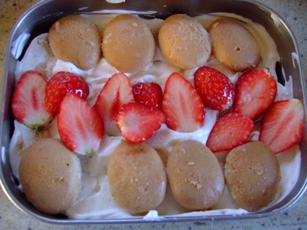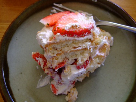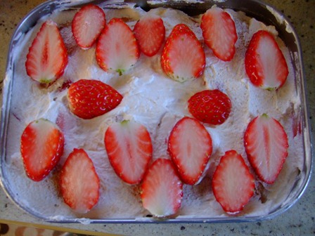 一番上にクリームとイチゴをのせて、ふたをして冷蔵庫へ。