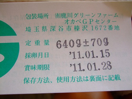 卵の日付がパック詰めの日ではなく、