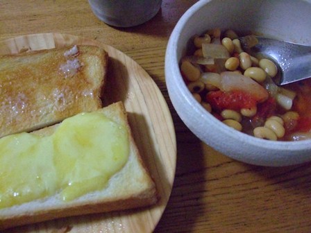 スープは、玉ねぎ、トマト、大豆ドライパックでした。