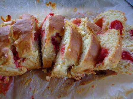焼き立ては、いちごの赤がきれいです。