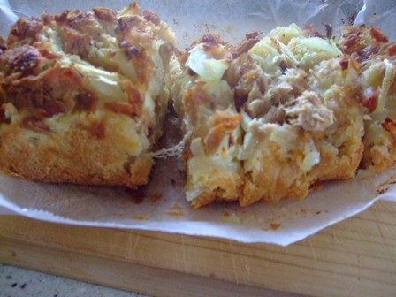 一つは、塩味系で、玉ねぎ入り、まぐろ油漬け缶は上に乗せました。
