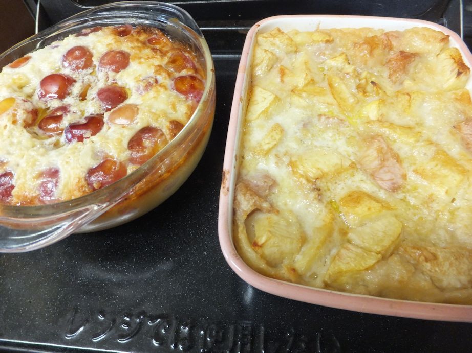 さくらんぼと桃と、二種類のクラフティを作りました。