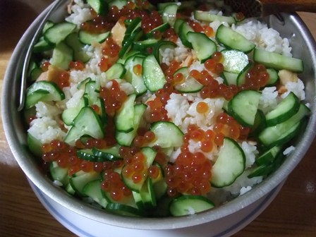 いくらをのせたら、はらこ飯です。 残りご飯もけっこうたっぷりあったので、 冷凍の塩鮭を上に乗せて、圧力鍋で蒸しなおしました。 低圧で、5分ほど加熱して、 鮭をほぐせば、鮭ごはん。 少ないいくらでも、鮭ごはんの上に散らせば豪華なはらこ飯になります。 きざんだきゅうりもちらしました。 PR |