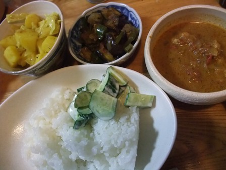 玉ねぎ+なす+ピーマン+トマト小+シーフード用カレー