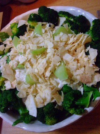 水菜が届いたので、セロリとゆでブロッコリーをくわえてサラダ。